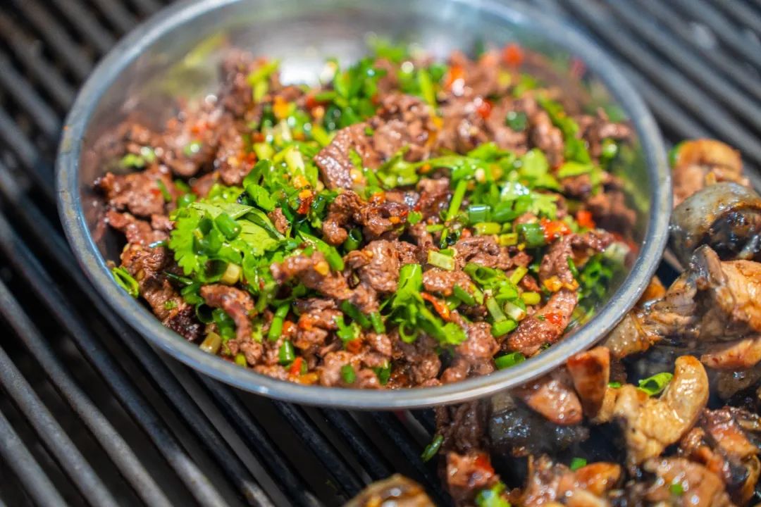在屏边,特色烧烤也是一绝。如果你不知道点什么?照着图上来一份一模一样的就行。