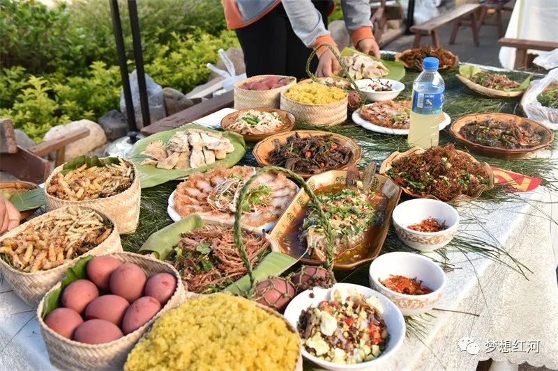 红河县世居汉族、哈尼族、彝族、傣族、瑶族5个民族,其中境内哈尼族常住人口数占比超过全县总人口数的80%。在长期的生产生活过程中,哈尼族群众形成了丰富的饮食文化,一道道独具民族特色的地方风味美食,让人垂涎欲滴。