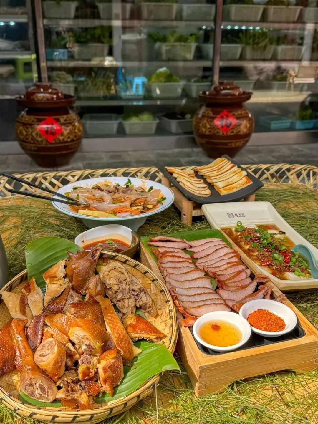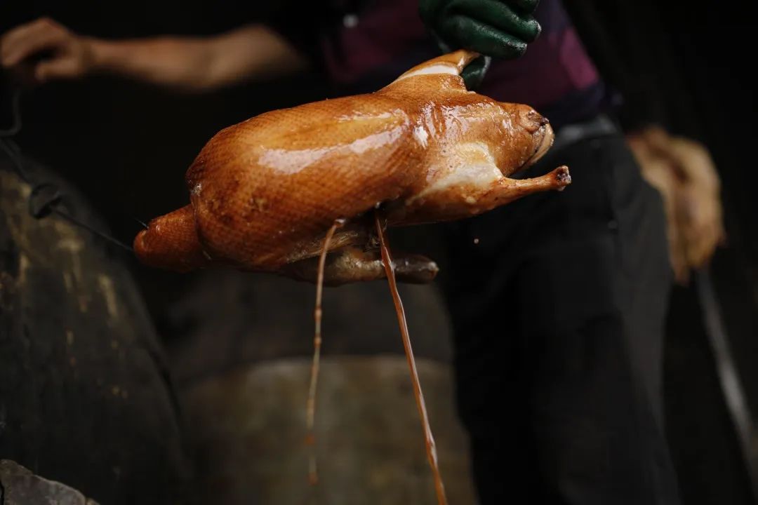 在距离建水县城30分钟车程的地方,有一个叫做曲江的小镇,到这里的食客只为寻觅一种美食——曲江烤鸭。作为建水传统美食之一,已有100多年历史。2021年6月18日,建水曲江烤鸭烤制技艺入选红河州第六批非物质文化遗产保护名录。曲江烤鸭名号虽不如北京烤鸭响亮,味道上却是不让分毫,南来北往的食客,无不为之流连忘返。