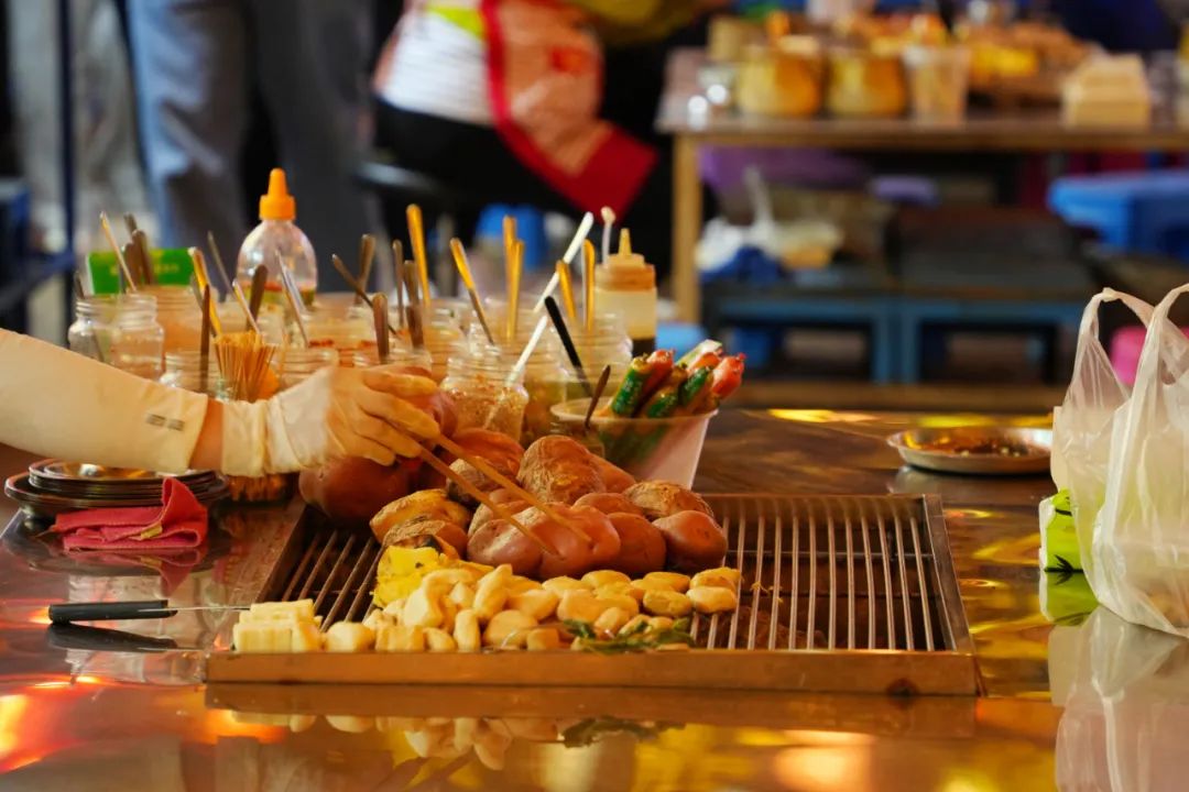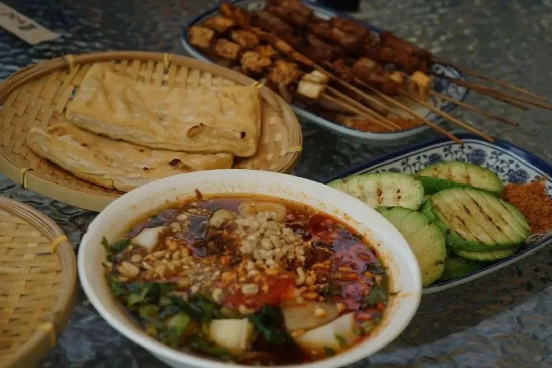 除了菊花米线,新安所还有很多美食,粉蒸肉、冰稀饭、老冰棒木瓜水、蘸水卷粉、烤豆腐……吃不完,根本吃不完。