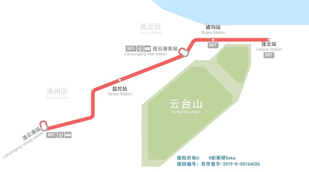 另外,连云港近年来正在重点发展市域快轨线路。2019年2月12日,连云港轨道交通市域快轨S1线正式开工建设。2019年12月30日,连云港轨道交通市域快轨S1线开通运营。2020年5月21日,连云港轨道交通市域快轨S1线二期工程(连云港——东海)开工建设。