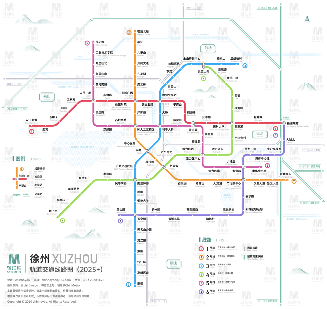截至2020年11月,徐州地铁在建线路共有3条,即徐州地铁3号线一期、徐州地铁3号线二期、徐州地铁6号线一期,线路总长约47.43千米。