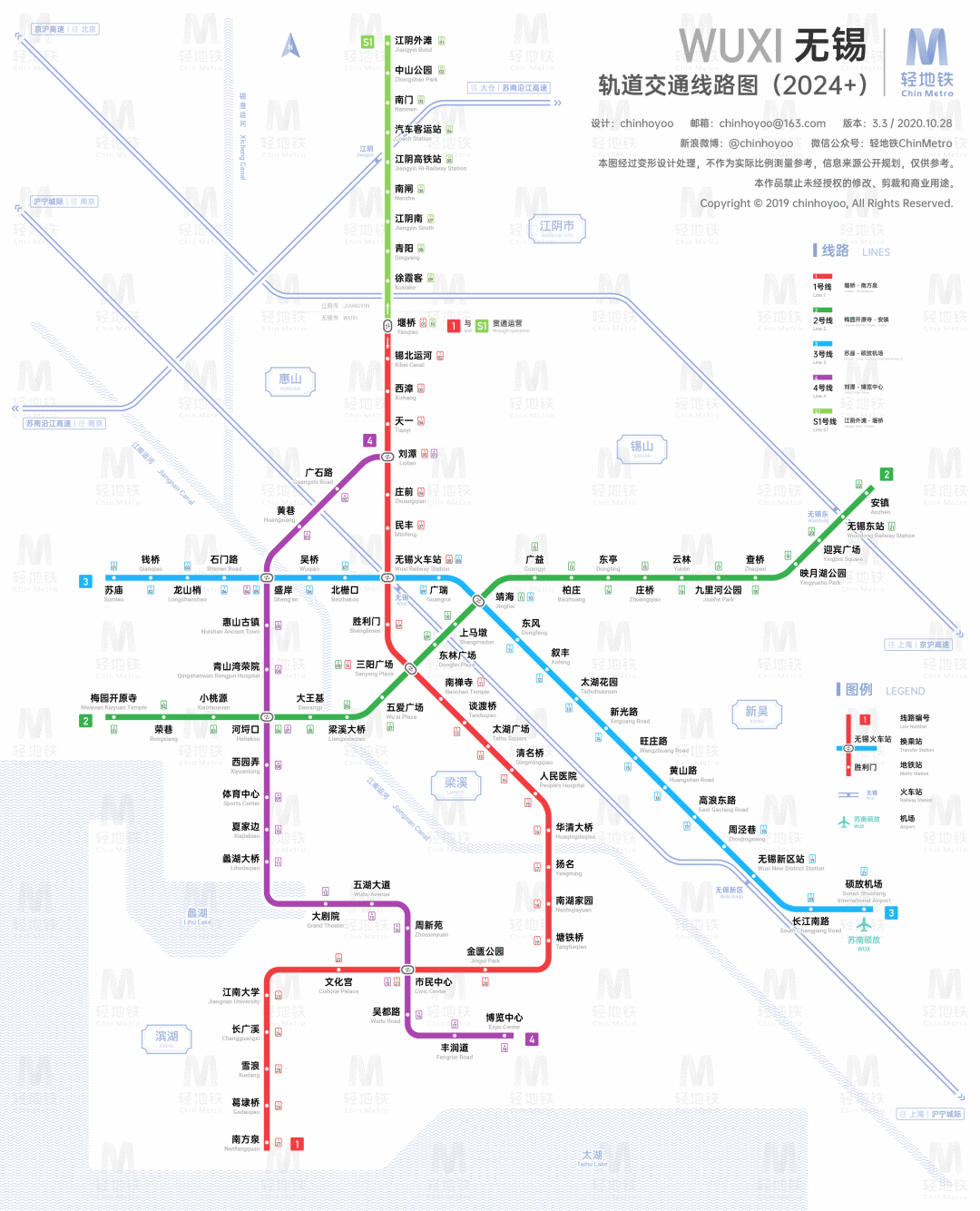截至2020年11月,无锡地铁在建线路共有2段,分别为无锡地铁4号线一期工程和锡澄靖城际轨道交通锡澄段,共约55.0千米。