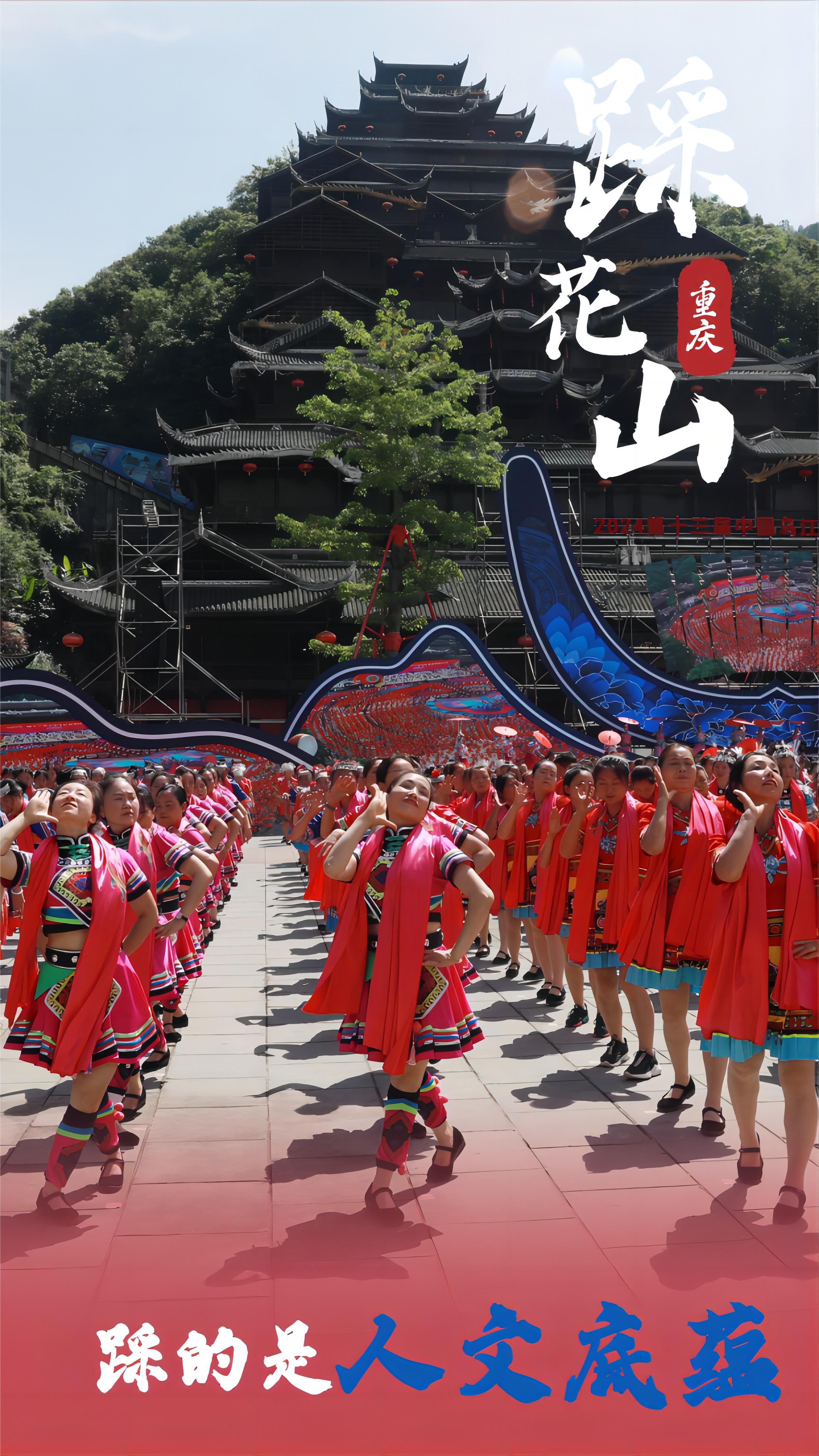 云南网讯(记者 杨碧惠)5月15日,第十三届中国乌江苗族踩花山节在重庆市彭水县开幕。据悉,踩花山是苗族人民的传统节日,每年农历四月初八,彭水苗族人民欢聚一堂,精美的苗装和头上的银饰将花坝子点缀成“花的海洋”,形象地称为“踩花山”。举办踩花山节,寄托群众的美好祝愿,展示彭水悠久的历史文化、秀美的自然山水、厚重的人文底蕴和浓郁的民族风情,全力推动文旅深度融合,促进高质量发展。