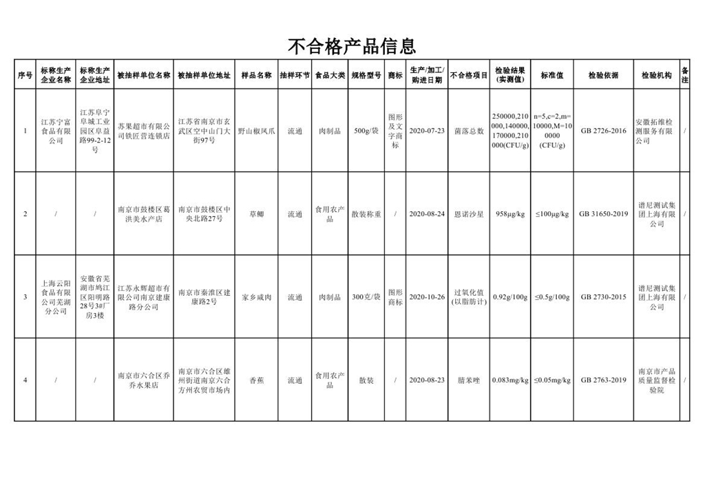 南京市市场监管局关于7批次食品不合格情况的通告(2020年第49期)