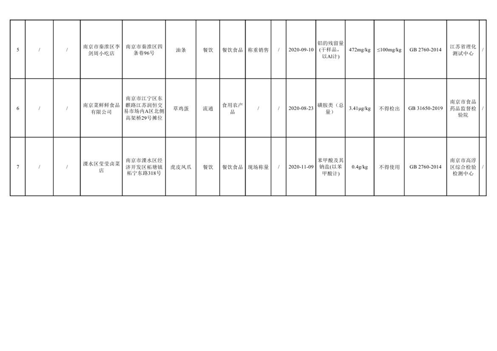 附件:南京市市场监管局关于7批次食品不合格情况的通告(2020年第49期)