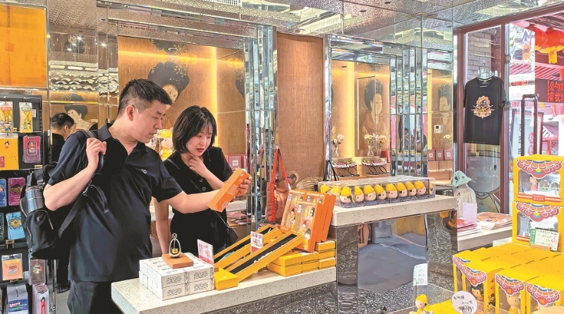 5月16日,游客在永兴坊街区挑选文创产品。记者 李卫摄
