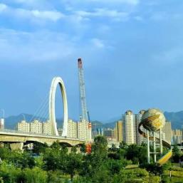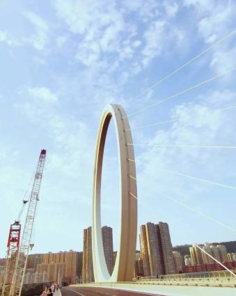 团结渭河大桥主桥钢塔为“日月同辉”造型,是国内首个非同心不对称环形钢塔。这座大桥对我市“南北畅、东西快”的城市交通体系产生巨大推动力,在桥上看日出日落、赏璀璨夜景,将成为宝鸡市一道新的风景线。