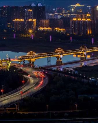 在宝鸡,桥是一道独特的风景,蟠龙大桥(又名代马大桥),也串联起宝鸡人的生活,渭河穿城而过,南接高铁南站,北连宝鸡市行政中心,全长1.1公里。