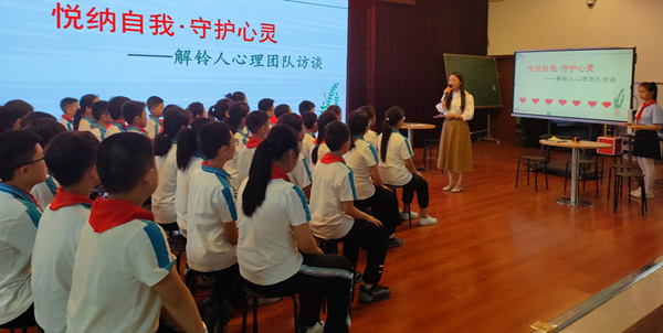课前,班主任选拔和培训了八名学生组成的解铃人心理团队。