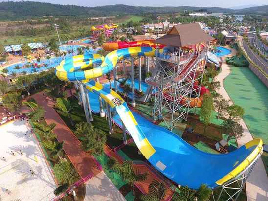 乐园占地面积15万平方米,配置国际顶级水设备,拥有全国占比最大的“儿童游乐区”、全球最大直径的“超级大喇叭”、首个反转水环滑道“大水环”、全国首台娱水漩涡体验项目“霹雳旋风球”、大型亲子互动水寨“巨型水寨”、水上竞速之王滑道“彩虹滑道”等众多亲水游乐项目。
