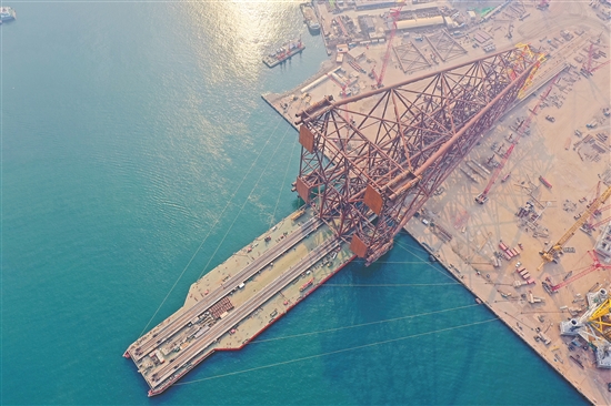 在建造此导管架之前,中油海工承建的最大导管架高40米,重量约5000吨。从40米到265米,从5000吨到2.4万吨,中油海工实现了建造技术、施工组织、项目管理的革命性突破。