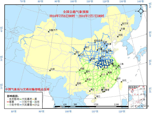 图4 全国公路气象预报图(2月6日08时至7日08时)
