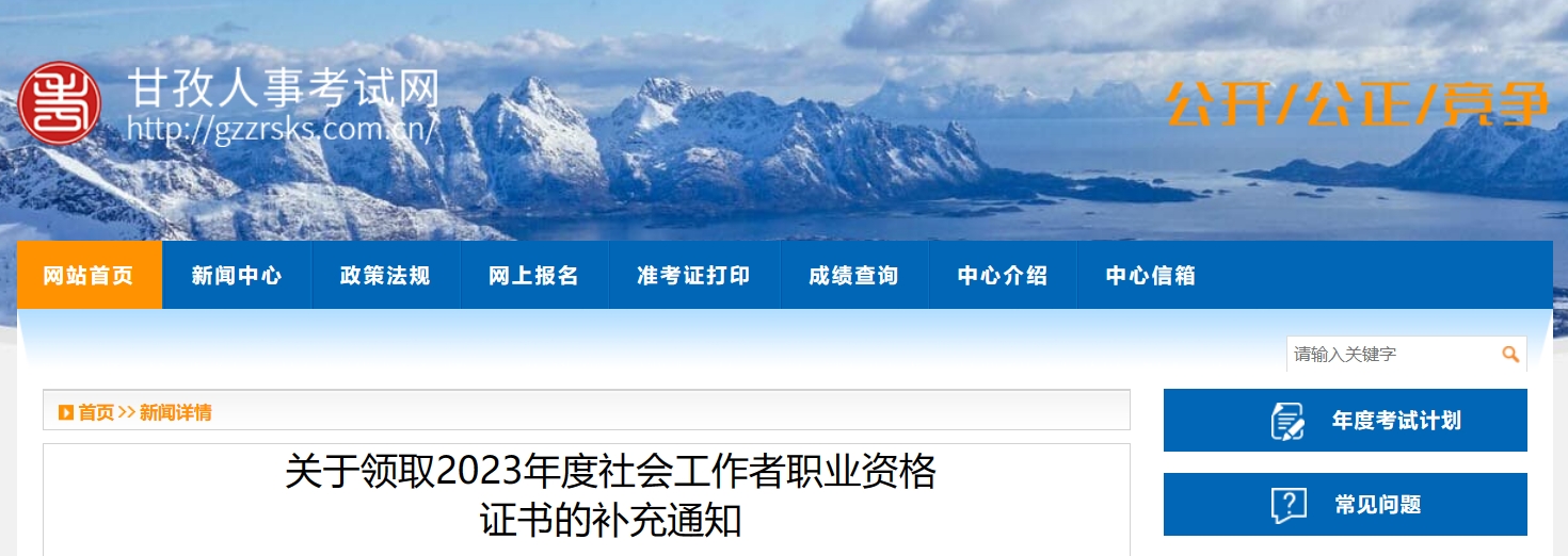 近日,甘孜人事考试中心发布《关于领取2023年度社会工作者职业资格证书的补充通知》,已取得2023年度社会工作者证书的考生请登录中国社会工作网注册,并完善相关信息后到指定地点领取证书。