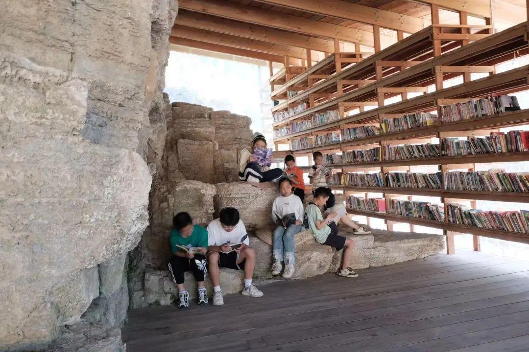 作为建筑师,罗宇杰也一直在思考,建筑可以给人带来什么改变?可以给一个村子带来什么?他觉得,人文是很重要的一件事,因而决定在浙水村里建一座书屋。参考了当地的建筑传统,他建筑结构固定在原本的岩石壁上,另一面用木头做成了书架。靠内侧可以放书,靠外侧可供孩子席坐阅读。书屋正对着学校,罗宇杰觉得,建一座书屋也就是建造了一间容纳人文的公共空间。在其中玩耍阅读的孩子可能无法立刻理解书屋对于乡村的意义,但人文的启蒙最终会影响到孩子,也影响到村子里的其他人。