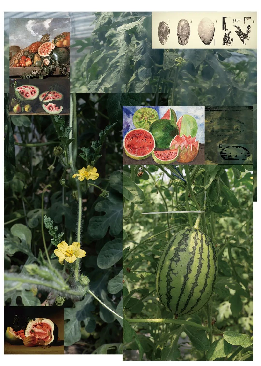 人们常说一方水土养一方人,一方水土也养育了一方植物。来到河南中牟,路边的西瓜、大片的麦田、茂盛的槐树,这些植物成为留在袁野记忆里浓墨重彩的印象。《中牟植物见闻》里既有槐木、月季、二球悬铃木这样的观赏植物,也有小麦、西瓜、石榴这些具有中原特色的的经济作物。它们有的早已成为历史的见证与证明、家国情感的象征,有的则隐喻着人类命运,并且与人类仍然保持着动态交互关系。以植物为载体,袁野通过资料搜集和阅读、以多媒介的形式,呈现出植物与地方的深度关联,也照亮了人与植物、人与自然相互塑造的过往、当下和未来。
