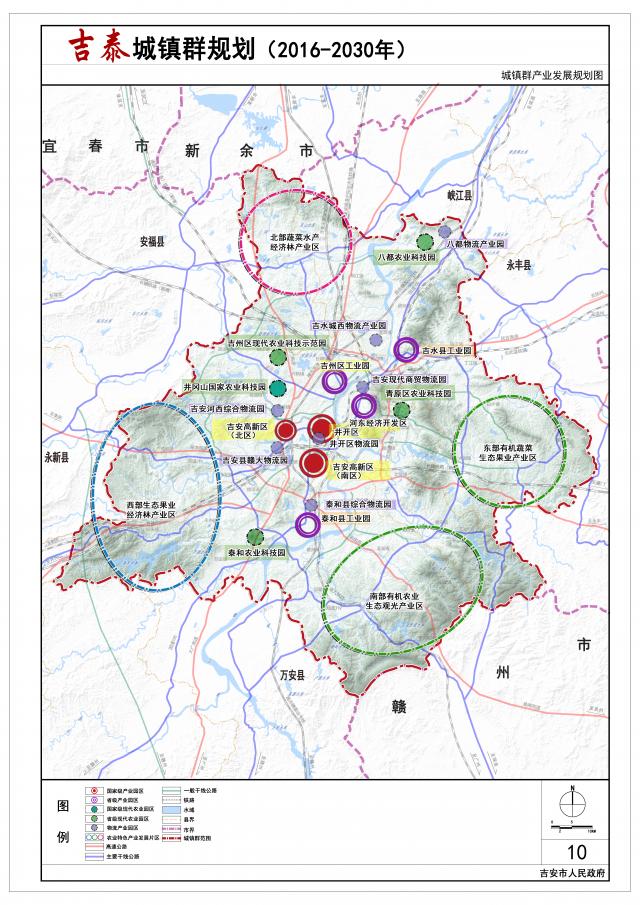 2030年建设重点:城西组团、泰和县文田片、吉水县河西片。