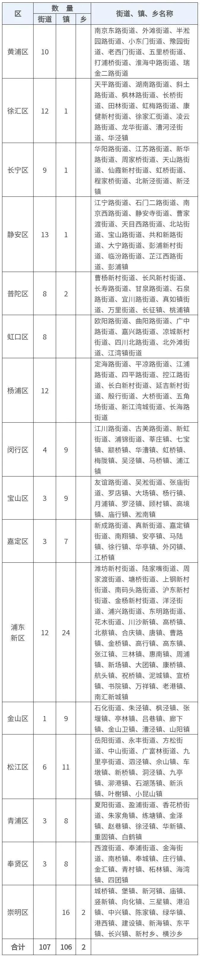 你知道上海现在有多少街道多少乡镇吗?市民政局介绍,截至2022年12月31日,上海16个区共有107个街道、106个镇、2个乡。所有街道、镇、乡名称详见↓
