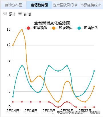 系统每日及时更新汇总全省疫情动态,提供了疫情分布图、疫情趋势图、定点医院及门诊、市县疫情统计等内容。
