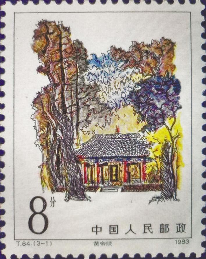黄帝,是中华民族共同尊奉的始祖。“黄帝崩,葬桥山”, 桥山位于延安市黄陵县,黄帝陵位于桥山之巅。1961年,黄帝陵被国务院列为全国第一批重点文物保护单位。1983年4月5日,国家邮政部门发行了1套《黄帝陵》特种邮票,图案名称分别为《黄帝陵》《人文初祖殿》《轩辕柏》。这套邮票以手绘的形式来表现黄帝陵的庄严大气、古朴典雅,增强了炎黄子孙对中华民族传统文化的认同感。