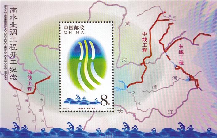 2003年9月26日发行的《南水北调工程开工纪念》纪念邮票小型张。(摄于8月12日)