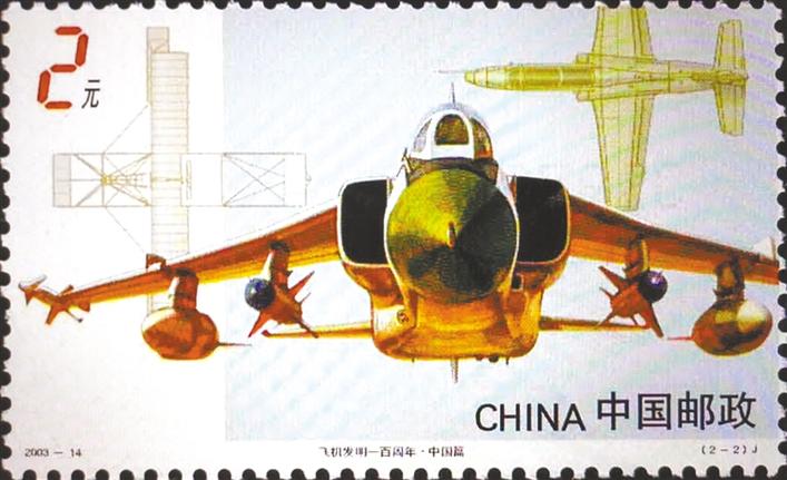 《飞机发明一百周年》 纪念邮票上的“飞豹”战机图案。(摄于8月10日)