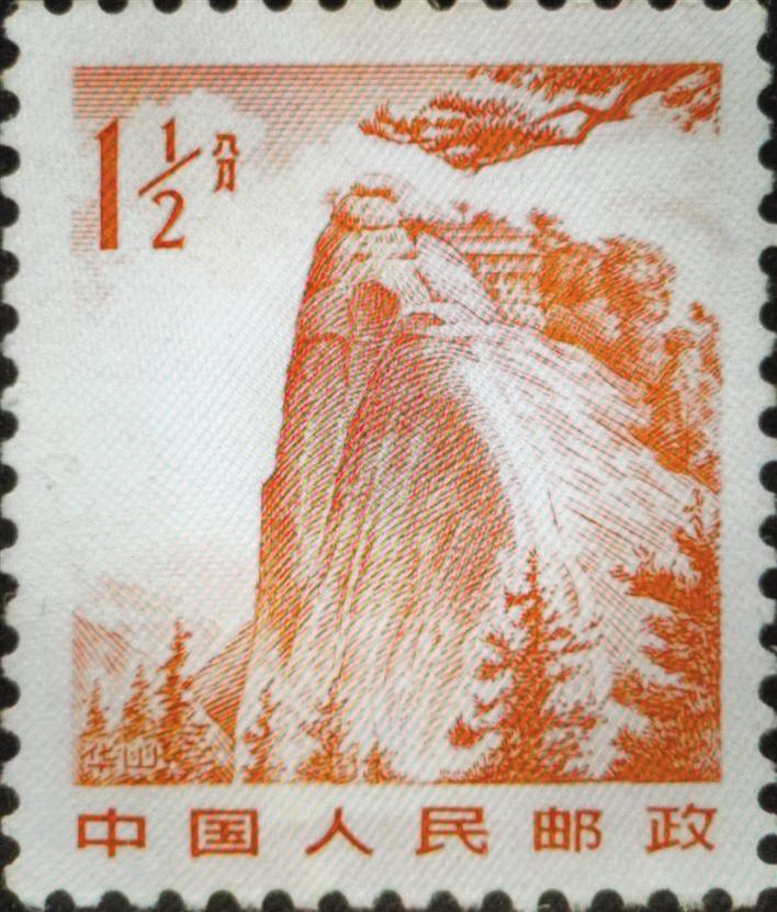 1983年12月2日发行的《祖国风光》普通邮票上的华山。 (摄于8月14日)