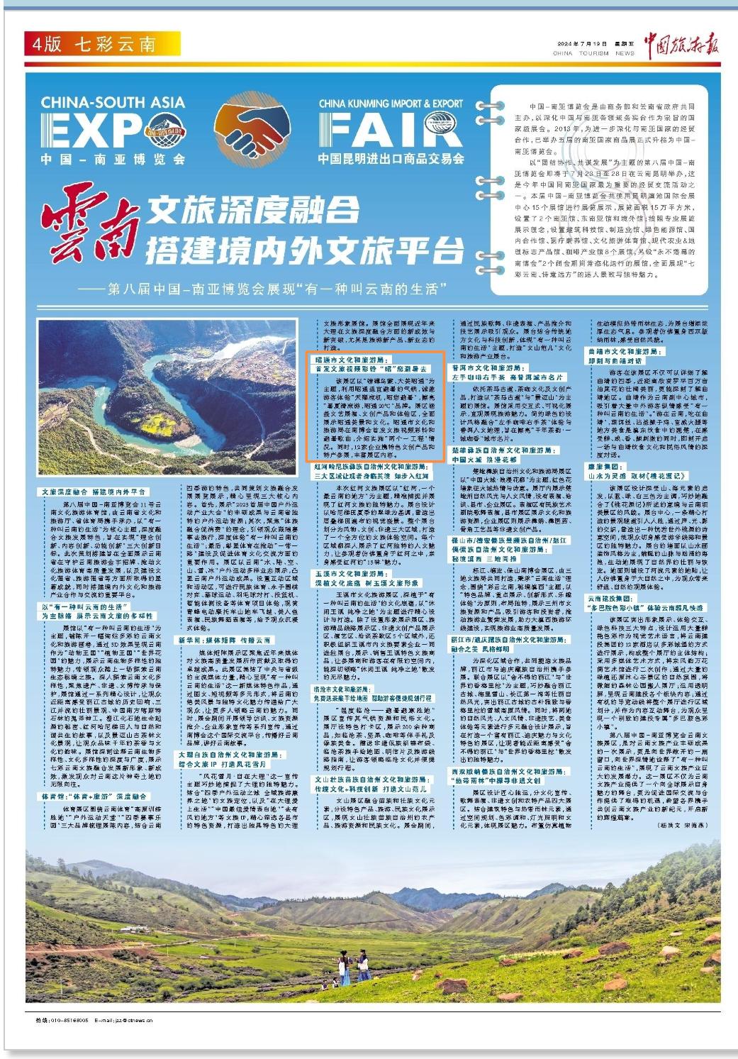 2024年7月20日,《中国旅游报》第4版整版聚焦云南,刊发稿件《云南文旅深度融合 搭建境内外文旅平台——第八届中国-南亚博览会展现“有一种叫云南的生活”》,关注昭通首发文旅视频彩铃 “昭”您避暑去。