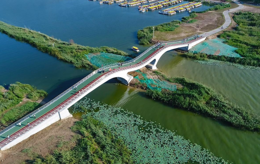 滹沱河像一条长长的玉带,波光粼粼,水鸟翔集,飞桥映水,美丽的景色牵扯着游客的目光,成为石家庄周边观赏游玩的好去处。