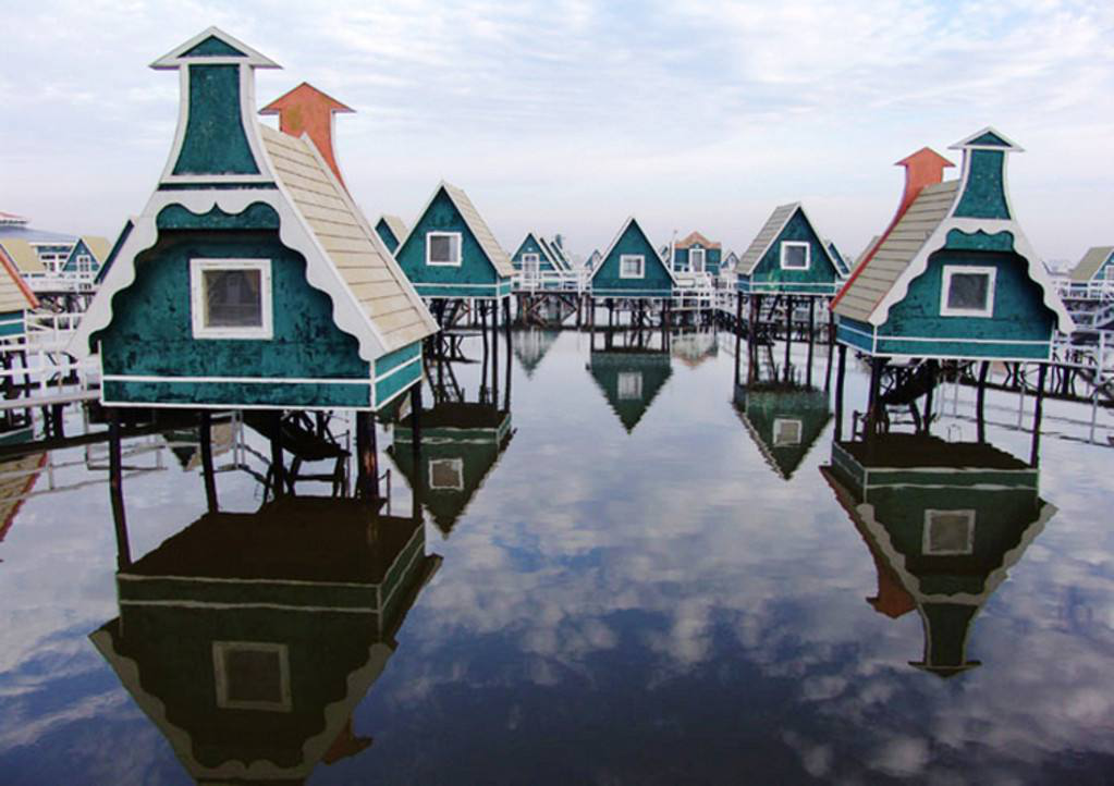 这里别致的荷兰风情建筑引人神往,红顶木屋和绿野风车在海天之间勾勒出一幅充满异国情趣的浪漫画卷。