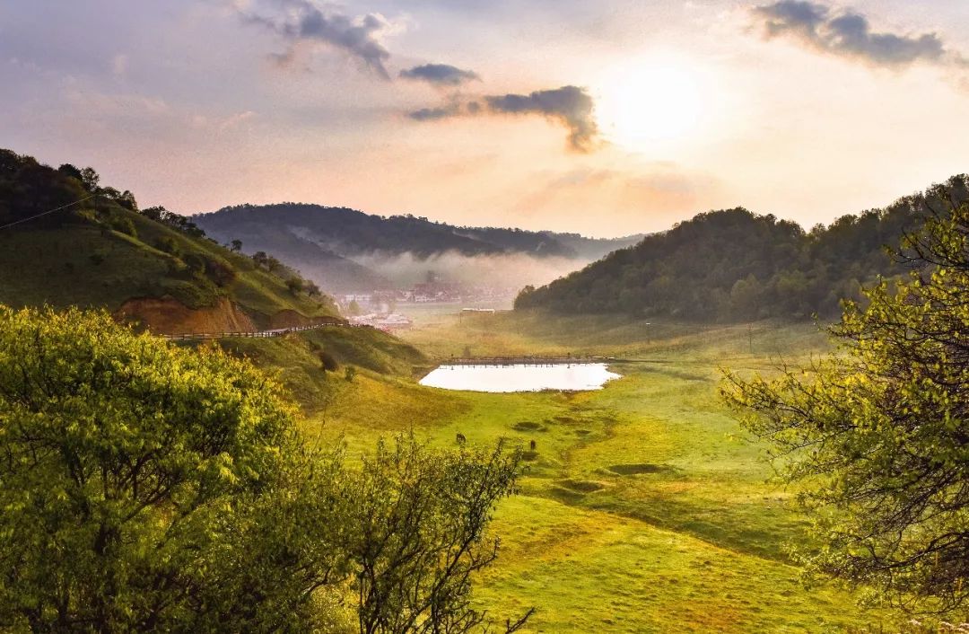 校马场被誉为景区最美的地方,这里树在山顶戴帽,草似毯缠腰,谷底溪水悄悄,景色秀丽、风景旖旎。