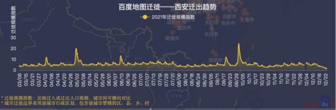 ▲12月22日西安迁出地主要省份和城市。图自百度迁徙地图