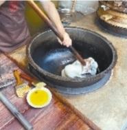 擀面皮,原名“御京粉”。“宝鸡擀面皮最早可以追溯到唐代的‘淘冷面’。据史料记载,清朝康熙年间,岐山县八亩沟村有位王同江先生,中年时在清宫御膳房当御厨,专做擀面皮供皇家食用。当时擀面皮在京城仅作为御膳,因此被称为‘御京粉’。”宝鸡市面皮行业协会会长张新怀说,王同江年老返乡后,民间厨艺人纷纷慕名前来求教烹调技艺,从此,这一宫廷食品便传入周原乡野。由于其制作过程中有一道擀面的工艺,故而当地人更喜欢称“御京粉”为“擀面皮”。改革开放后,随着市场经济的发展,这一流传在周原的面食逐渐遍布宝鸡,走向全国各地。