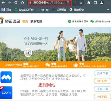 女子听了之后觉得心里没底,担心被扣费,便开始按照对方要求,打开对方提供的腾讯微保网址(假冒钓鱼网站)查看保单信息,当看到网站上的保单确实有自己名字后便信以为真,急忙联系客服,听从对方指导下载并登录“云视听”视频会议App进行处理。