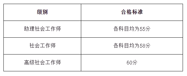 摘要 中国人事考试网11月1日发布《关于2023年度社会工作者职业资格考试单独划线地区合格标准的通告》,2023年度社会工作者职业资格考试单独划线地区合格标准已出,助理社会工作师各科目55分合格,社会工作师各科目58分合格。