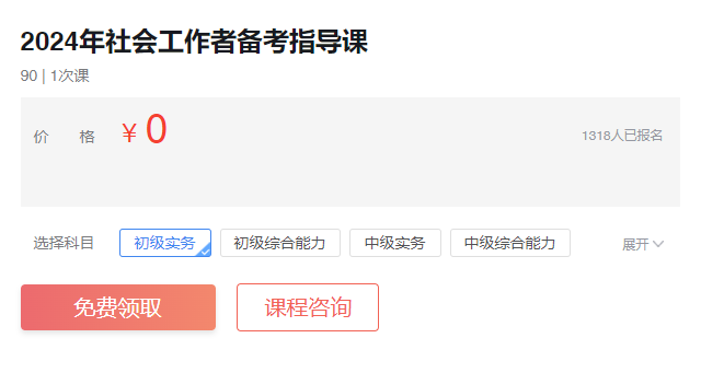 2024年社会工作者考试正在备考中,有意向报考的考生,建议考生 免费预约短信提醒,届时将发送短信提醒您预约省份2024年社会工作者考试报名开始时间,助您无忧备考!我们还整理了2024年各省社会工作者报名时间和报名入口汇总,内容不断更新中,请提前收藏,以供查看!2024年社会工作者备考指导课提供给大家,点击链接或者下图免费领取吧!