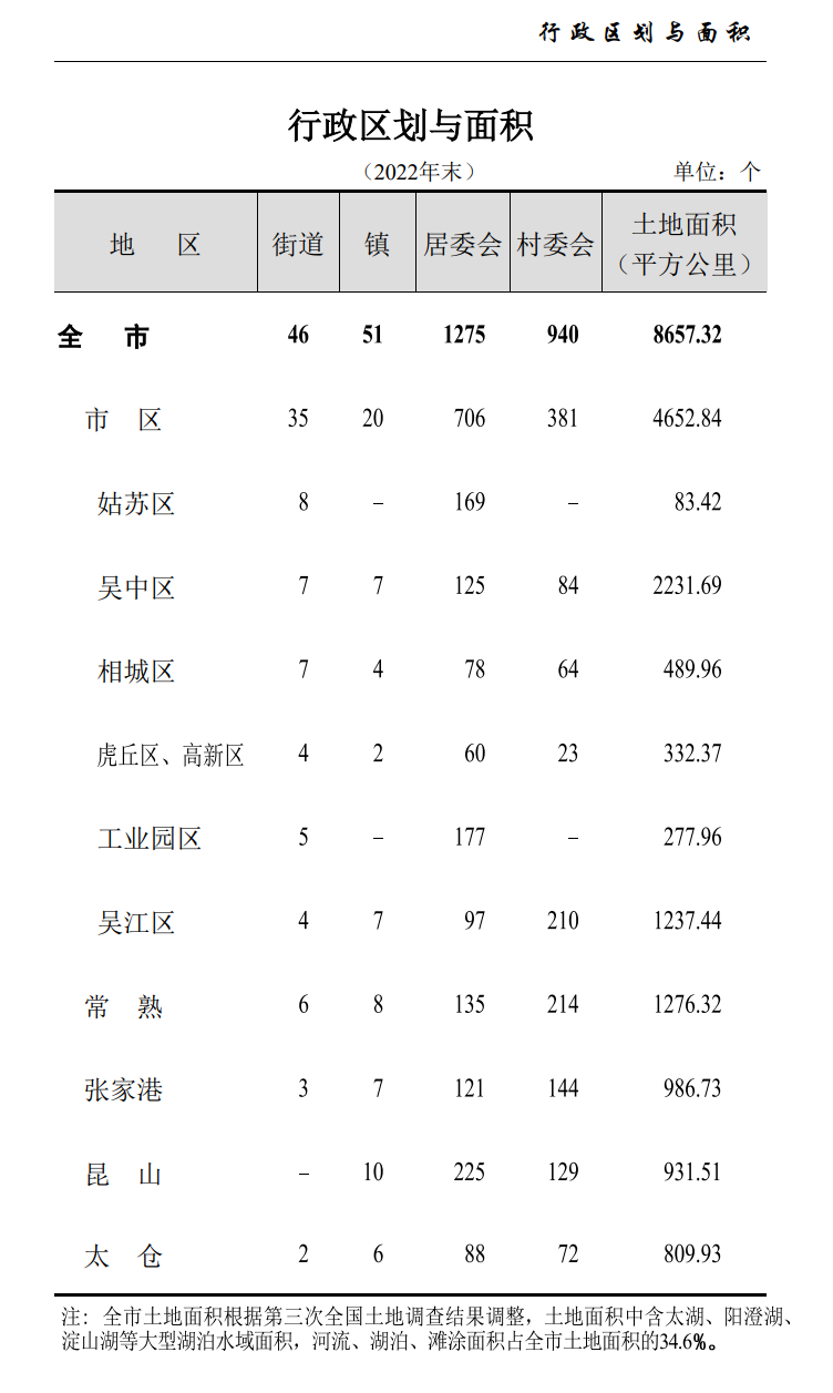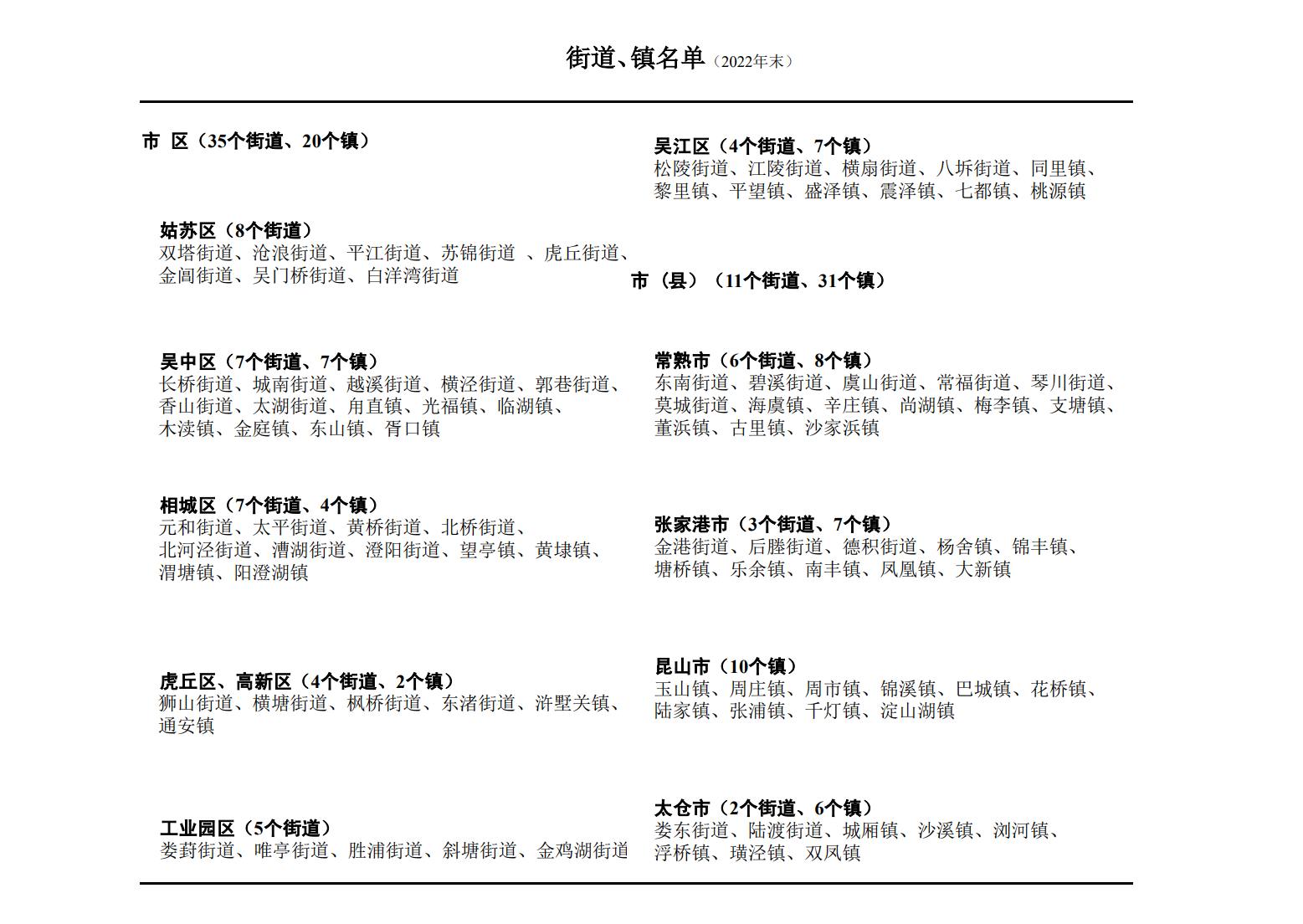 苏州位于长江三角洲中部、江苏省东南部,地处东经119°55′~121°20′,北纬30°47′~32°02′之间,东傍上海,南接浙江,西抱太湖,北依长江,总面积8657.32平方公里。全市地势低平,境内河流纵横,湖泊众多,太湖水面绝大部分在苏州境内,河流、湖泊、滩涂面积占全市土地面积的34.6%,是著名的江南水乡。 苏州属亚热带季风海洋性气候,2022年市区平均气温18.1℃,降水量1004.2毫米。四季分明,气候温和,雨量充沛,土地肥沃,物产丰富,自然条件优越。主要种植水稻、麦子、油菜、林果等。低洼塘田较多,出产莲藕、芡实、茭白等水生作物。特产有鸭血糯、白蒜、柑橘、枇杷、板栗、梅子、桂花、碧螺春茶等。长江刀鱼、阳澄湖大闸蟹和太湖白鱼、银鱼、白虾等为著名水产品。 苏州城始建于公元前514年,距今已2500多年历史,目前仍坐落在春秋时代的位置上,基本保持着“水陆并行、河街相邻”的双棋盘格局,以“小桥流水、粉墙黛瓦、史迹名园”为独特风貌,是全国首批24个历史文化名城之一。全市现有文物保护单位884处,其中国家级61处、省级128处。 苏州是全国重点旅游城市。平江、山塘历史街区分别被评为中国历史文化名街和中国最受欢迎的旅游历史文化名街。苏州大市范围内现有108座园林列入苏州园林名录。拙政园、留园、网师园、环秀山庄、沧浪亭、狮子林、艺圃、耦园、退思园等9个古典园林被联合国列入《世界文化遗产名录》。虎丘、盘门、灵岩山、天平山、虞山等都是著名的风景名胜。太湖绝大部分景点、景区分布在苏州境内。 苏州自有文字记载以来,已有4000多年历史。公元前十一世纪西周泰伯、仲雍南来,号勾吴。春秋时,东周寿梦于公元前585年称王,建吴国,吴王阖闾于公元前514年始建苏州城,为吴国都城。战国时先后属越、楚,秦代建置吴县,为会稽郡治所。汉代设吴郡。三国时属孙权吴国。南朝时属梁,设吴郡。隋开皇9年(589年)始称苏州。宋为平江府。元改平江路为治所。1356年张士诚改称隆平府。明洪武2年(1369年)称苏州府。清代续为苏州府。民国元年撤苏州府,设吴县。1928年建苏州市,1930年撤销,复称吴县。新中国成立后,苏州分为苏州市和苏州专区两个行政区。1953年1月之前和1958年7月至1962年6月,苏州市曾两次划归苏州专区。1953年至1957年,无锡、江阴、宜兴和武进4县先后划归苏州专区。1956年初,宜兴划归镇江专区。1958年初,苏州专区与松江专区合并。是年7月,武进县划归镇江专区,11月原松江专区所属各县划归上海市。1961年,从常熟、江阴划出部分公社,成立沙洲县。1983年初,江阴、无锡两县划归无锡市。苏州实行市管县体制,下辖1市(常熟)5县(沙洲、太仓、昆山、吴县、吴江)和平江、沧浪、金阊、郊区4个区。之后,5个县先后撤县建市,其中沙洲县更名为张家港市。1992年和1994年先后从吴县及郊区划出部分乡镇,分别设立苏州高新区和苏州工业园区。1993年被国务院批准为“较大的市”。2000年9月郊区更名为虎丘区。2001年初,吴县市撤销,并入苏州市区,设立吴中、相城两区。2002年,苏州高新区与虎丘区合并。2012年9月,撤销沧浪区、平江区、金阊区,以原沧浪区、平江区、金阊区行政区域设立为姑苏区,撤销县级吴江市,设立苏州市吴江区。2022年末,全市共有51个镇、46个街道、1275个居委会、940个村委会。