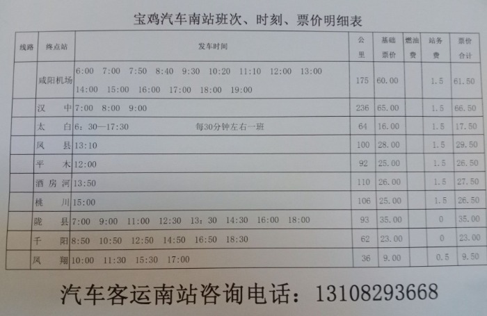 千阳发车时间: 7:00 9:00 11:00 13:00 15:00 17:00