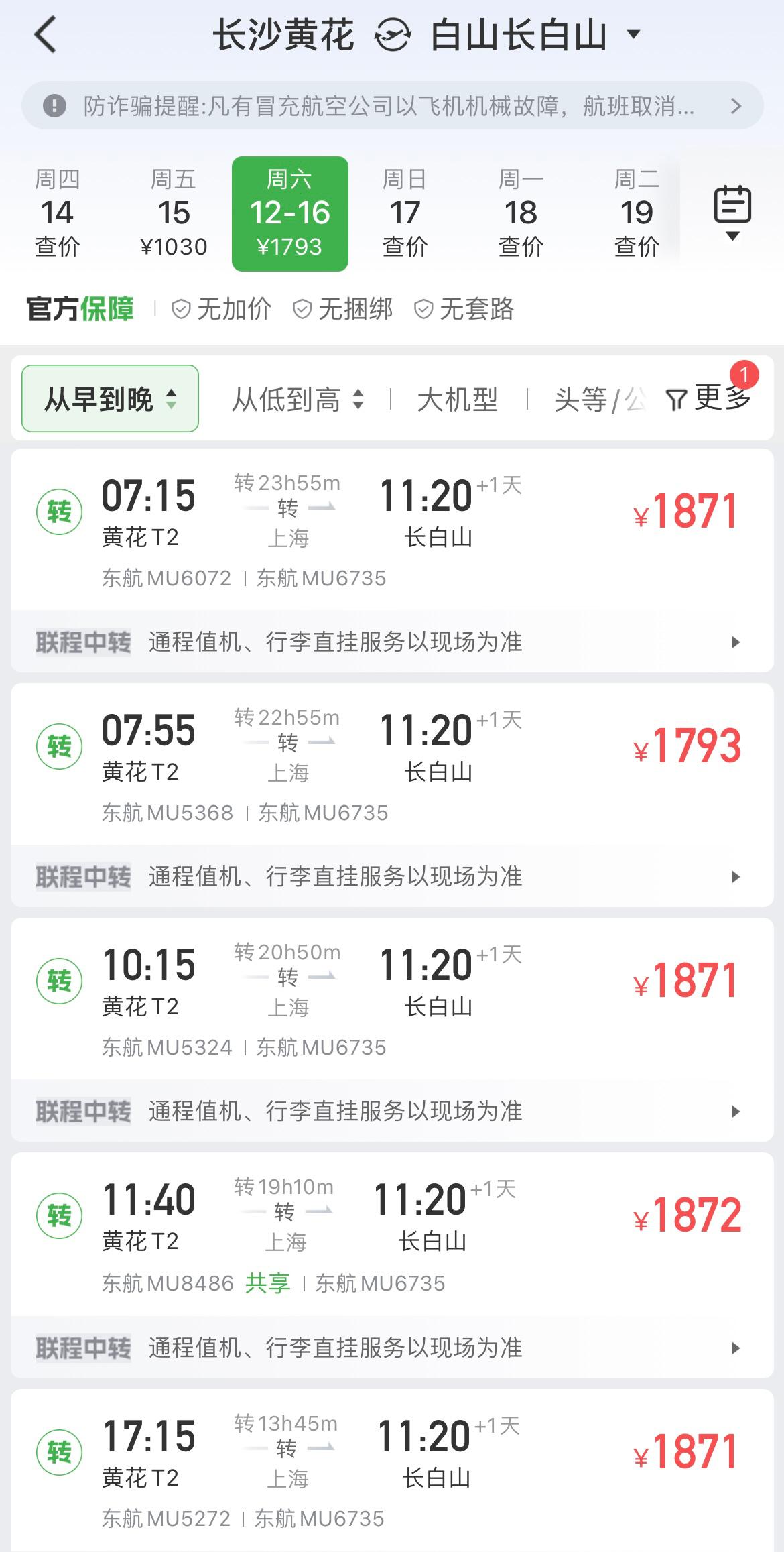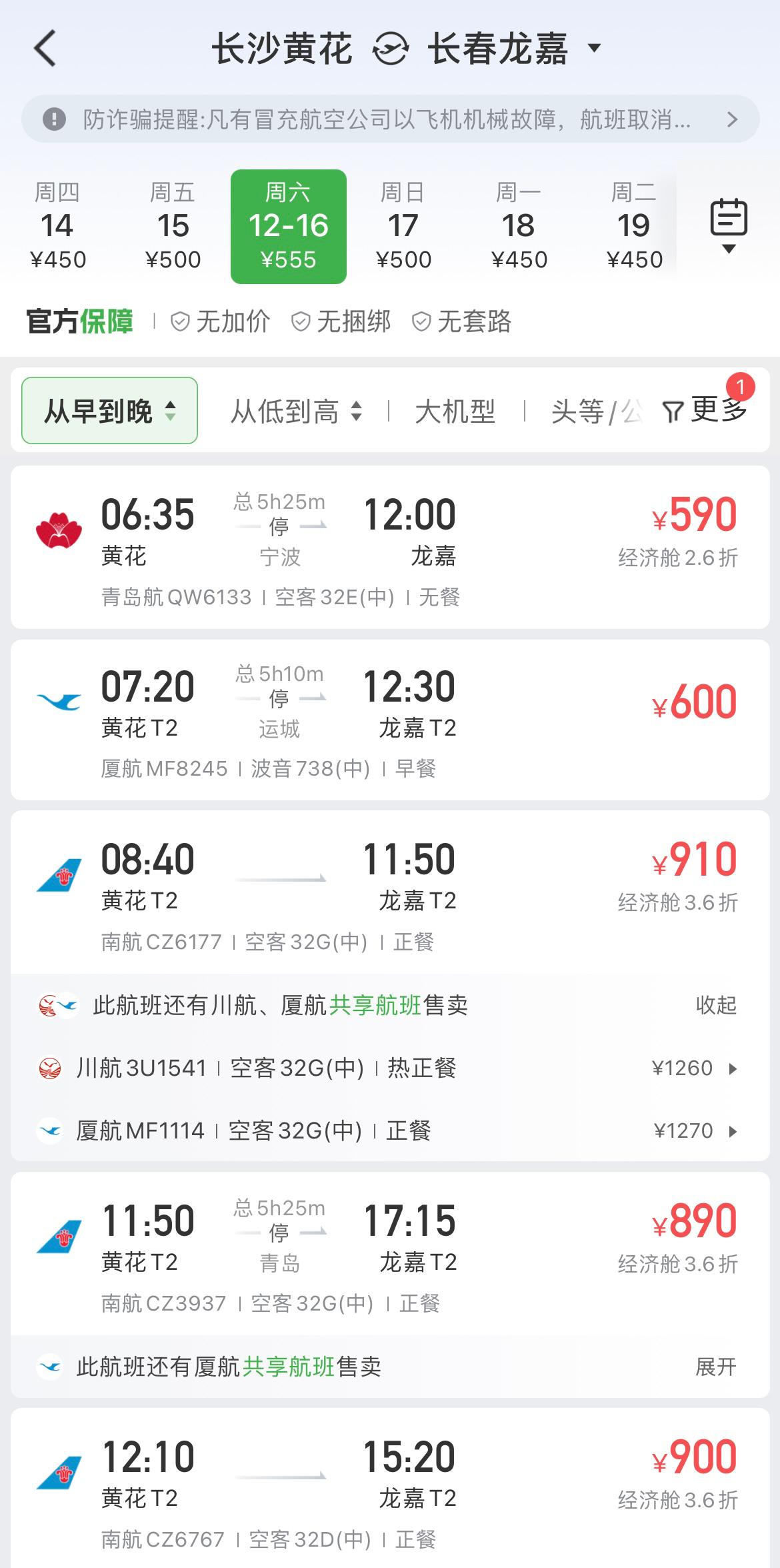 同程旅行也推出的特价优选机票榜单实时提供多款特价航线,如12月7日上海—大连120元起(不含税),12月4日上海-长沙170元起(不含税),12月3日杭州-深圳200元起(不含税)即使加上机建燃油费,依然相对划算。
