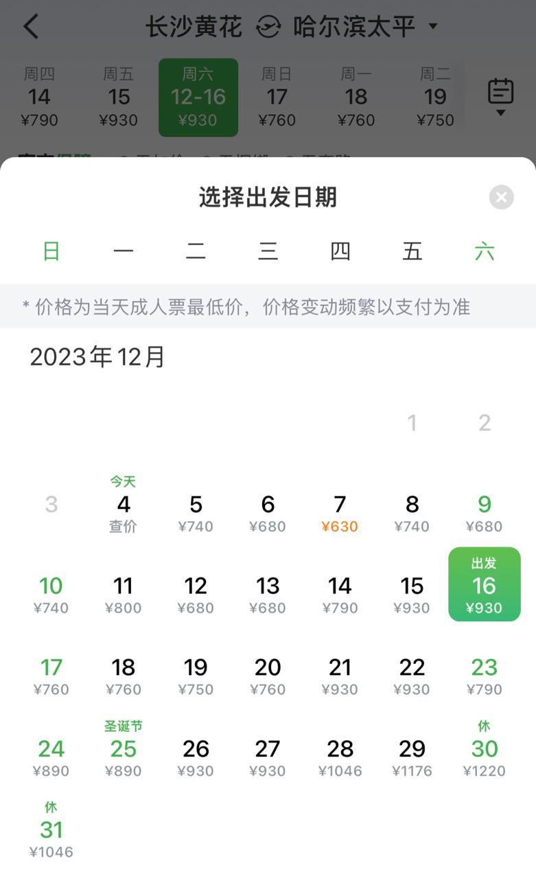 对于旅游城市和线路的选择,业内人士表示,目前从长沙出发的线路和城市中,东北城市的票价相对较高,记者通过航旅纵横查询发现,12月份长沙到哈尔滨的票价,最低的为630元,最高的为1100元;长沙到长春的价格大约在四五百元左右,圣诞节价格为540元。