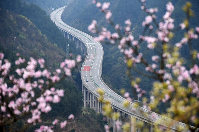 贵州思剑高速公路剑河县岑松镇段景色(3月23日摄)。