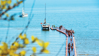 微风拖着阳光,在天地之间一扫,便把秦皇岛扫得温暖、明亮而又通透。这里的海如天,天如水,水如透明的时间,人在这样的氛围中行走,总有一种恍惚的感觉,仿佛并非置身于现实,也并非脚踏实地,而是在风中飘移,在光阴里游泳。