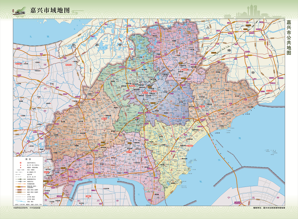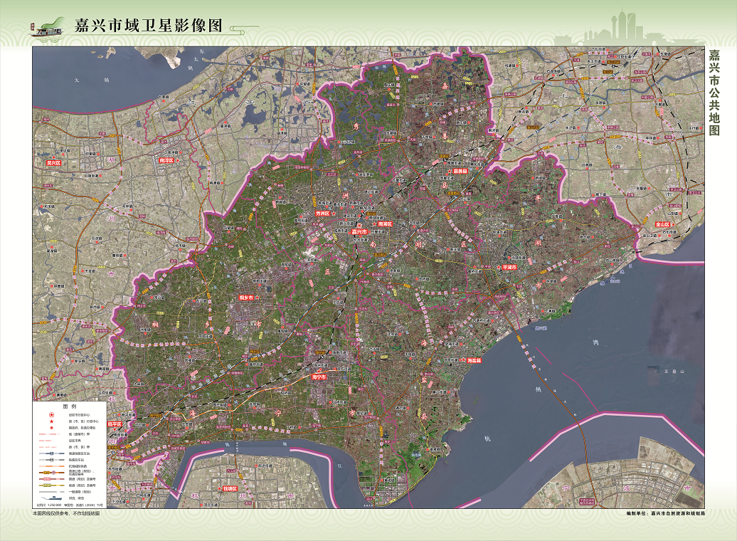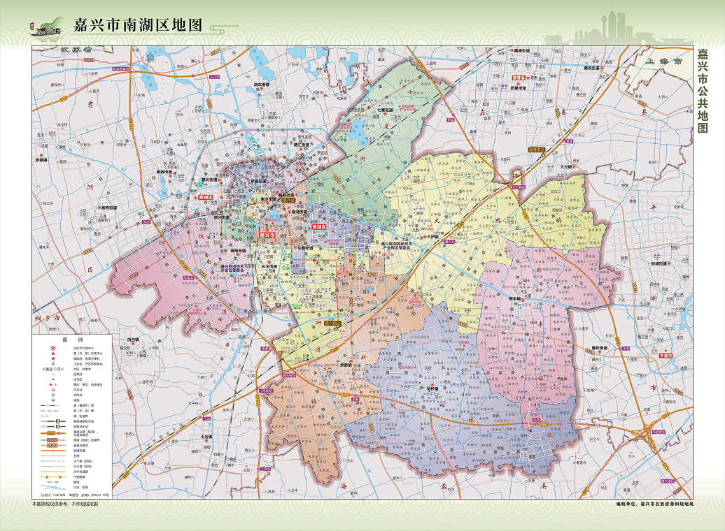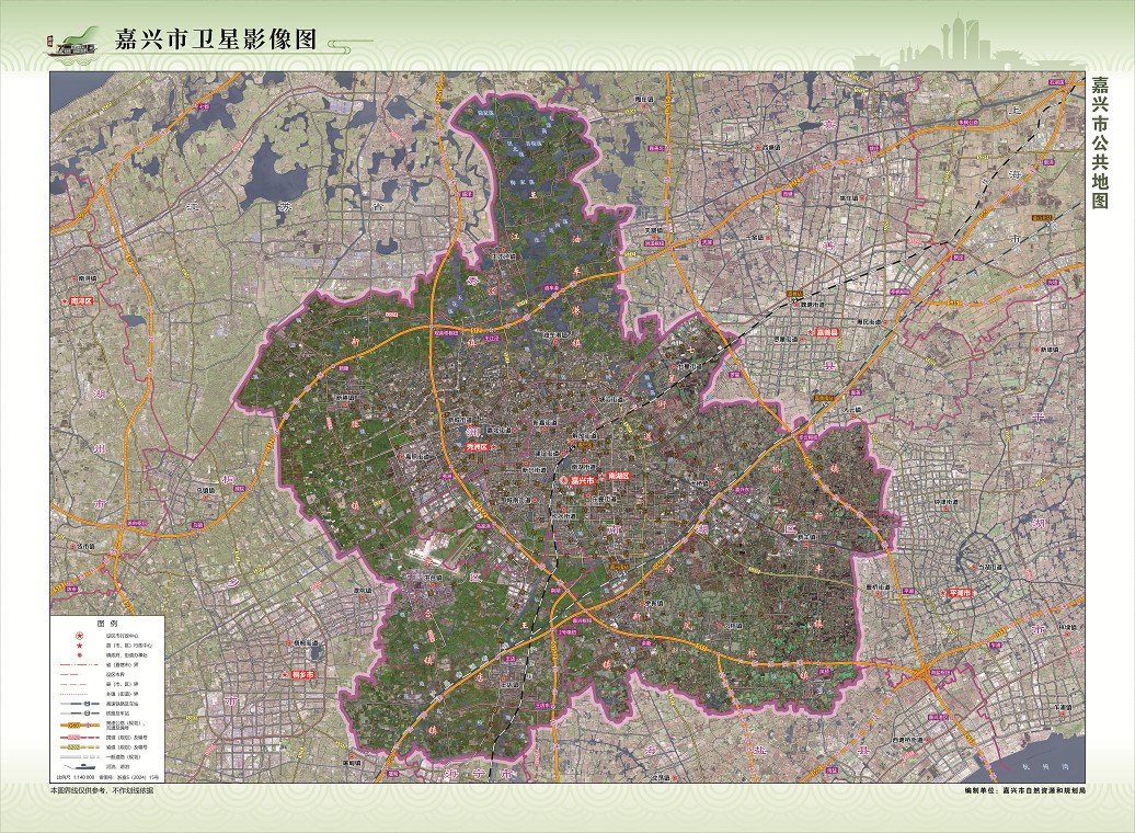 本次发布的2024版嘉兴市公共地图,是基于嘉兴市多尺度地图数据库,以最新遥感影像、相关政府部门专业数据成果等权威资料为参考,遵循地图规范编制而成,通过了市级地图审查。