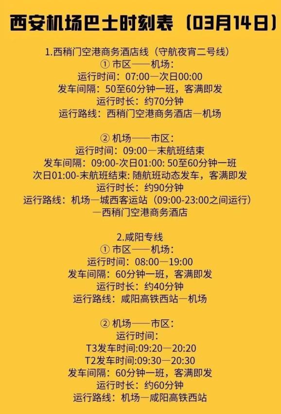 受疫情影响,自3月14日起,机西安机场巴士运营线路做如下调整: