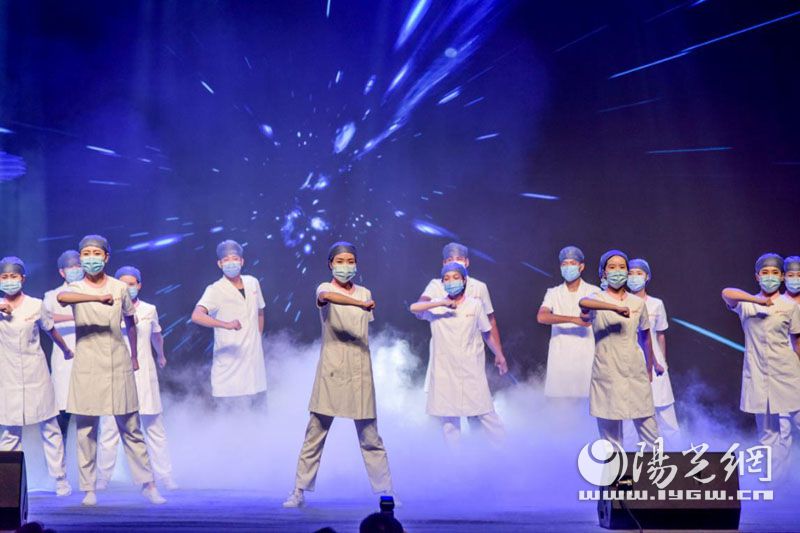 颁奖典礼上,来自陕西省人民医院的医护人员和活动主持人共同朗诵了由商子秦执笔的《医如人生》诗朗诵,还有西安国际医学中心医院医护人员带来的抗疫主题舞蹈《生死时速》,展示了惊心动魄的救治场景,引起了现场阵阵掌声。