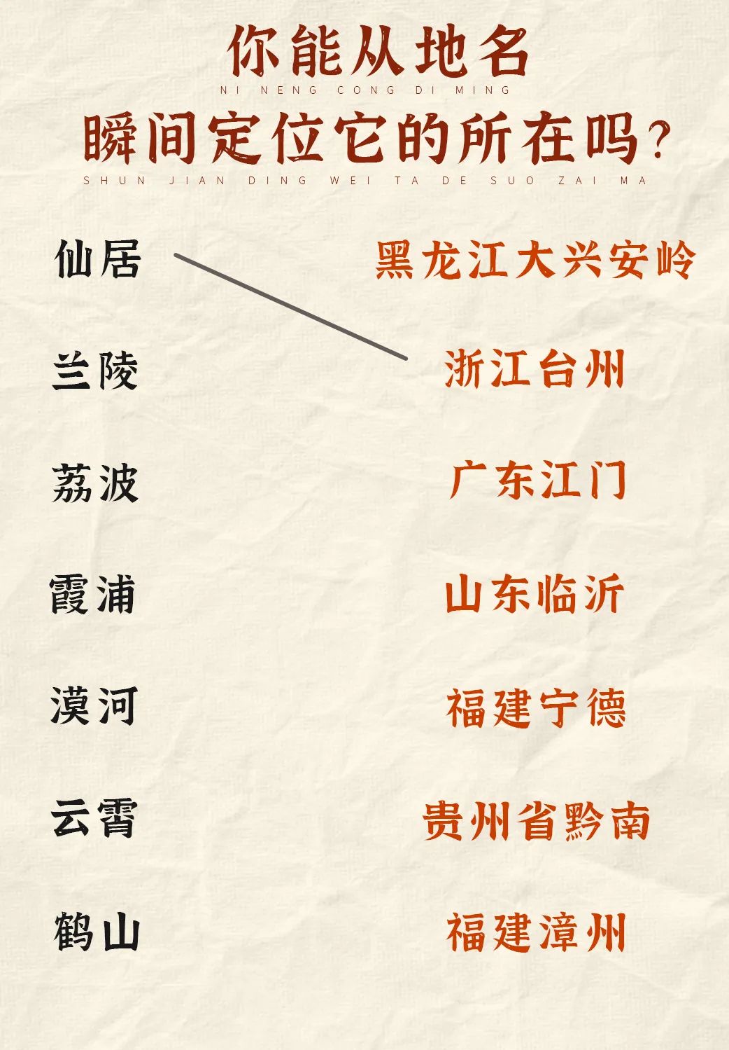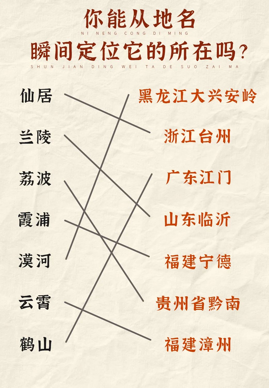 城市和省份连线,你能连对几个?