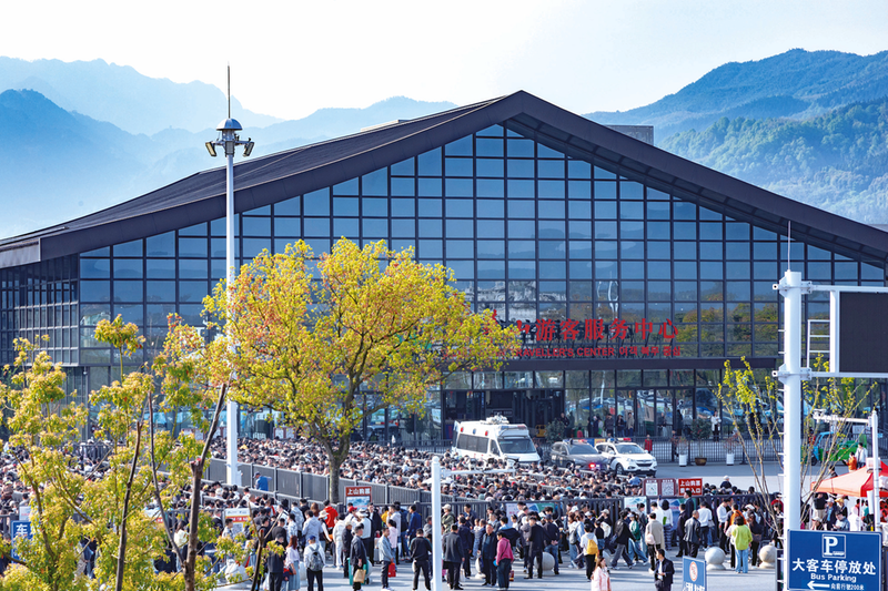4月5日,清明小长假第二天,九华山风景区迎来客流高峰。 通讯员 朱园园 摄