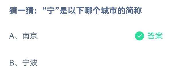 支付宝蚂蚁庄园4月3日的问题是猜一猜:“宁”是以下哪个城市的简称?在今日已提前公布,答对即可获得一份180g小鸡宝宝饲料作为奖励。那么接下来就让我们一起了解一下4月3日蚂蚁庄园的正确答案吧!