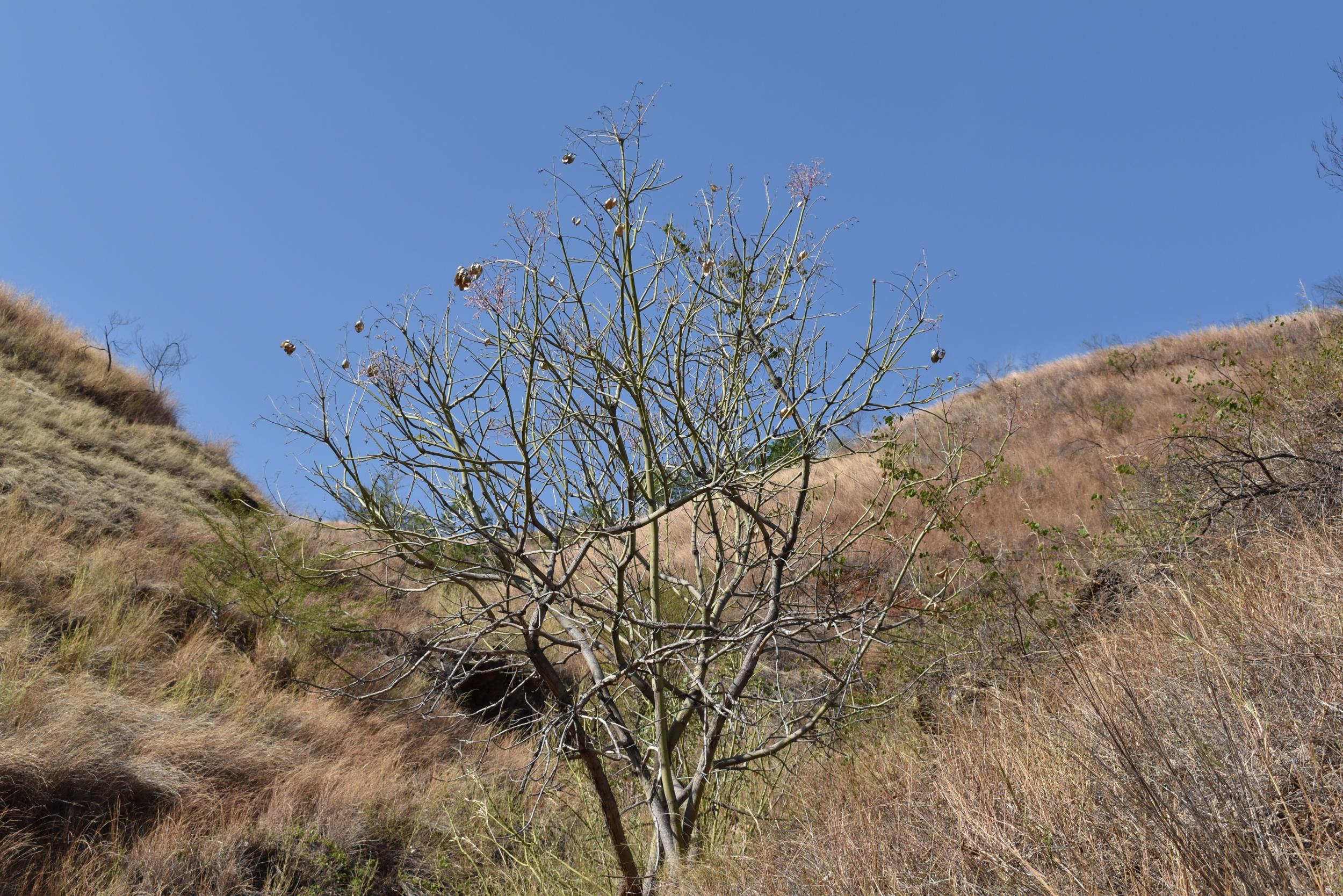 老肖是一名土生土长的江边人,对于江边的山山水水,他都了然于胸。“走了10多年,江边哪条箐、哪个山头长着什么样的树,有多少棵,我清楚得很。”问起他最熟悉的山林,老肖毫不谦虚,边说边用手指着云南梧桐在沙沟箐村的分布方向,“我们村的山林上有4个地方有云南梧桐树,每个地方少则几株(丛),多则一二十株(丛)。”