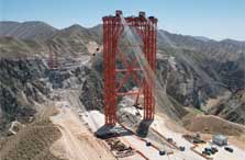 洮河大桥是兰永临高速公路的“咽喉”工程,大桥全长562.16米,主桥采用净跨400米上承式钢管混凝土拱桥设计。洮河大桥是兰永临高速公路的“咽喉”工程,大桥全长562.16米,主桥采用净跨400米上承式钢管混凝土拱桥设计。